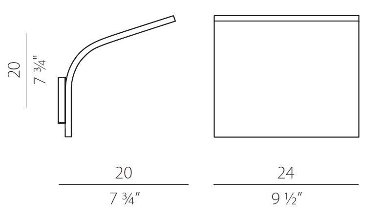 Lampada da parete, IP20. Struttura in alluminio verniciato bianco o titanio.