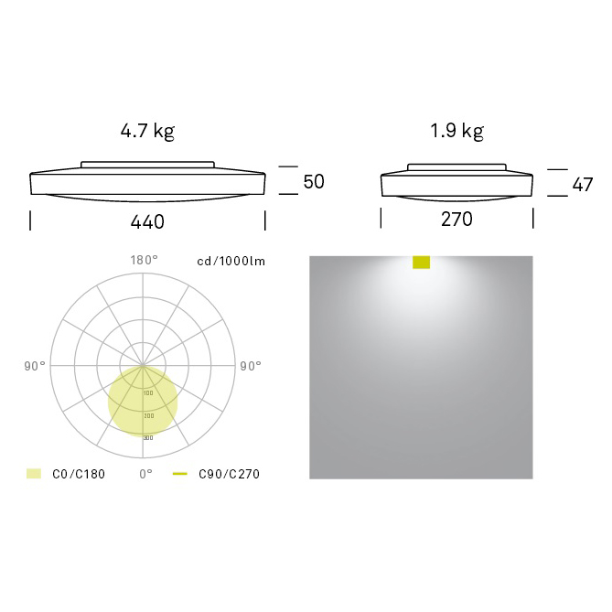- ø 27 cm LED 14W 2700/3000/4000°K, 1640/1710/1790lm