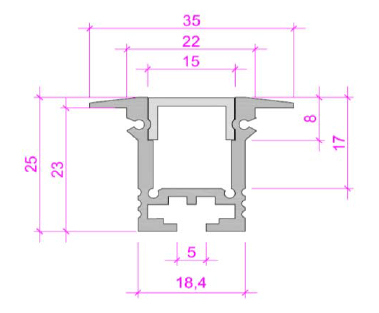 • Profilo ad incasso in alluminio anodizzato