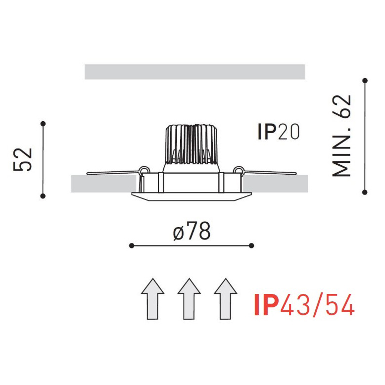 Fascio di luce 38°. Alimentatore incluso, con possibilità di scelta fra on/off, dimmerabile DALI-Push o taglio di fase.
