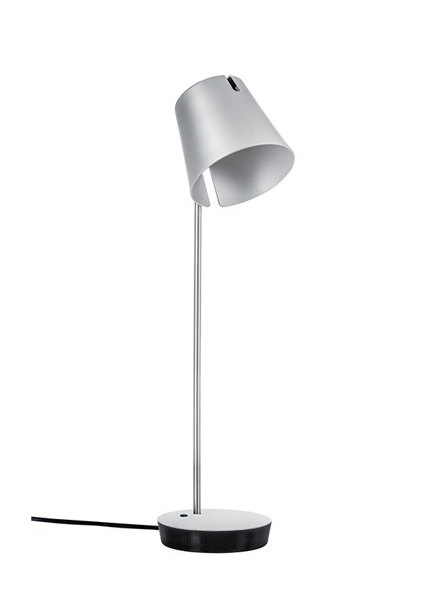 Lampada da tavolo, IP20. Struttura in alluminio. LED 20W, 2700°K o 1800°K-2800°K, dimmerabile con tasto sul corpo lampada.