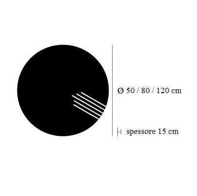 Disponibile in 3 dimensioni: ø 50 cm 5x1W LED 500lm; ø 80/120 cm 10x1W LED 1000lm.