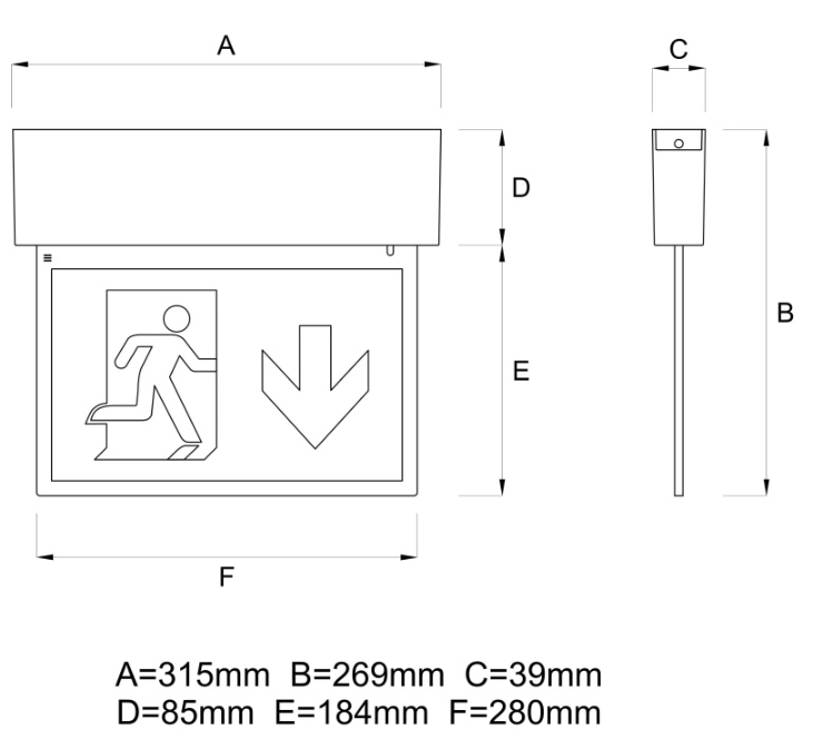 IP40 compreso di kit di pittogrammi e staffe per fissaggio a bandiera, a parete e a soffitto.