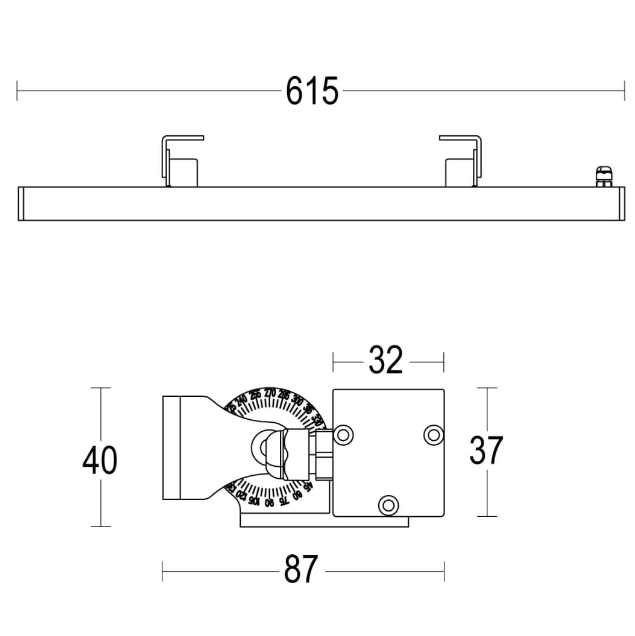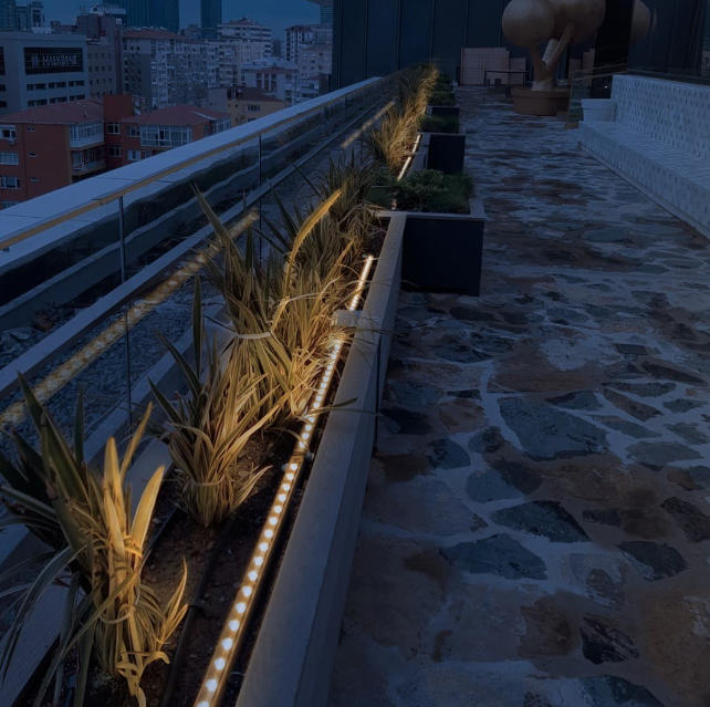 Apparecchio lineare a luce diretta, orientabilità 180° , IP68 IK10 driver esterno remoto , finitura colori antracite, grigio chiaro, bianco, corten, grigio antico, sabbia nero, bronzo, blu verde. Dim. 615mm varie potenze: