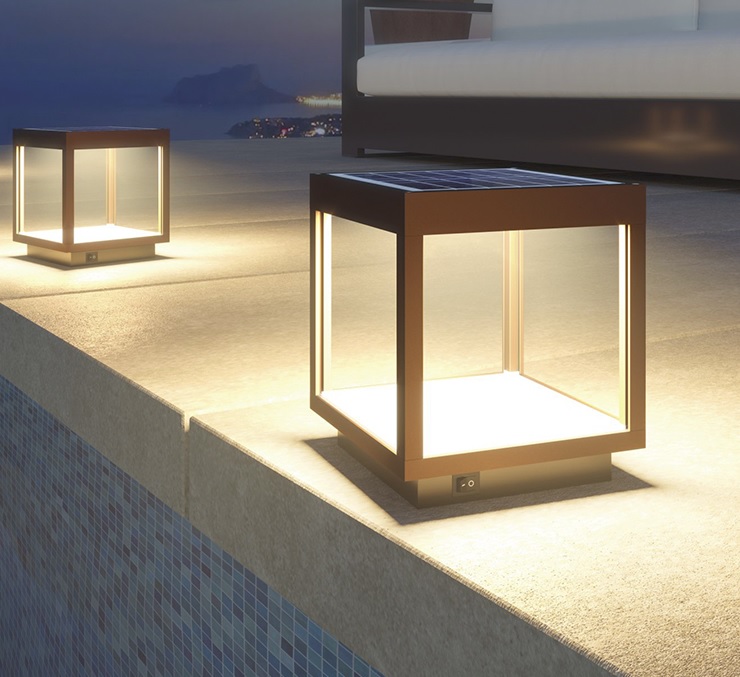 Lampada d'appoggio con pannello solare, IP65. LED 3.5W 3000°K 460lm, NON dimmerabile.